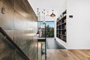Designer Tip: Consider unusable space, such as a void or high ceilings and incorporate statement lighting or exposed trusses to bring your new home interior to life.